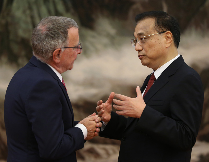 李克强指出,中国坚持走和平发展道路,坚定不移推进经济全球化。今年是中国改革开放40周年,作为世界上最大的发展中国家,我们愿在进一步扩大开放中同各国实现共同发展。在保护主义、单边主义抬头的背景下,我们愿同各方一道,继续本着相互尊重、平等互利原则,不断巩固和加强伙伴关系,推动对接发展战略,本着共商共建共享原则推动“一带一路”建设合作,携手捍卫多边主义和自由贸易,共建开放型世界经济,为促进世界经济稳定均衡发展注入新的动力。