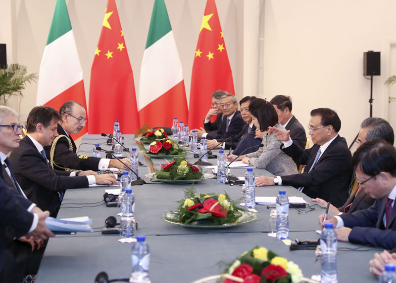 李克强表示,意大利新政府成立后,中意关系开局良好,两国建立起总理定期会晤机制。中方愿同意方进一步深化政治互信,保持高层交往势头,密切人员往来,推动新时期中意全面战略伙伴关系取得更大发展。