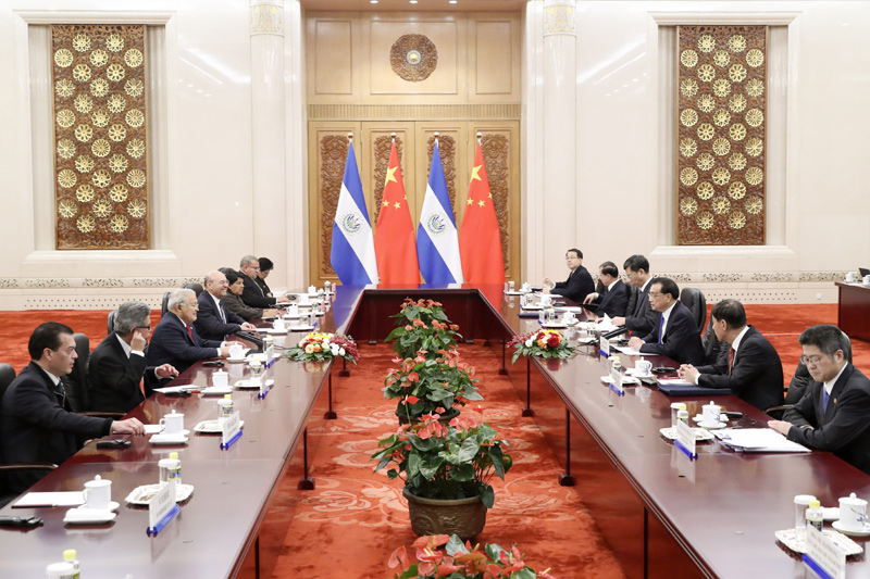 李克强表示,中萨建交是两国关系史上的大事,不仅有利于两国人民的福祉,也有利于中国同中美洲国家交往的扩大。昨天,习近平主席同总统先生举行了富有成果的会谈,规划了两国关系未来发展。中方重视萨方恪守一个中国原则的承诺,愿将“一带一路”倡议同萨方发展战略相对接,增进政治互信,扩大务实合作,推动两国关系稳步前行。
