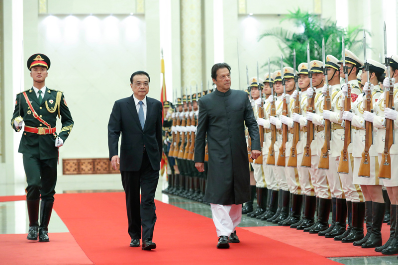国务院总理李克强11月3日上午在人民大会堂北大厅举行仪式,欢迎巴基斯坦总理伊姆兰·汗对华进行正式访问。