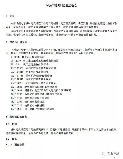 2、《钒矿地质勘查规范》(报批件)
