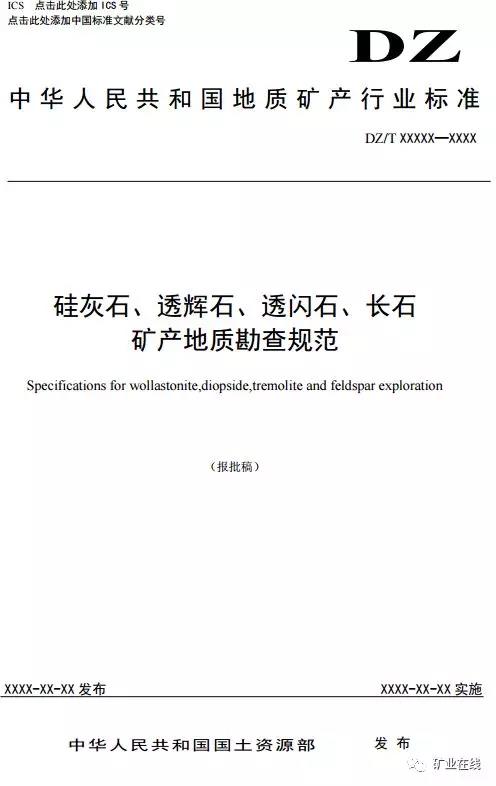 3、《硅灰石、透辉石、透闪石、长石矿产地质勘查规范》(报批件)