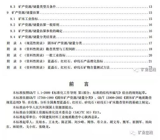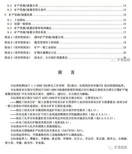 国家法规7月5日,自然资源部发布6项共计14个矿种的推荐性行业标准,分别为: