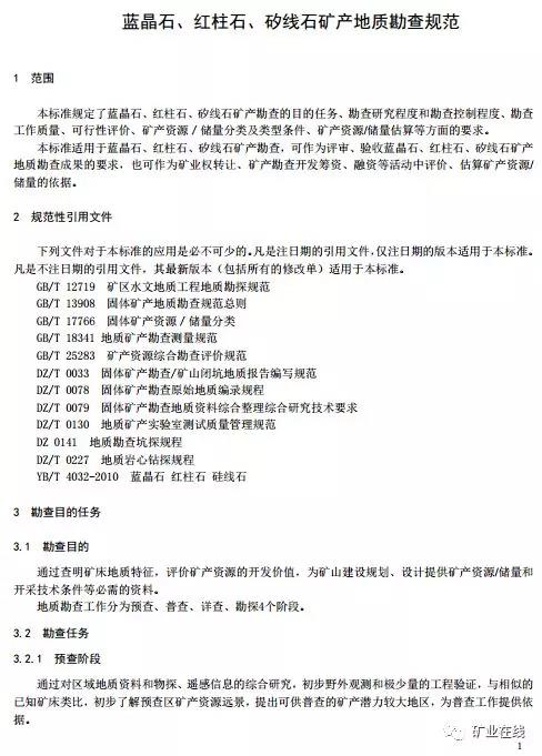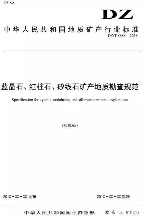4、《蓝晶石、红柱石、矽线石矿产地质勘查规范》(报批件)