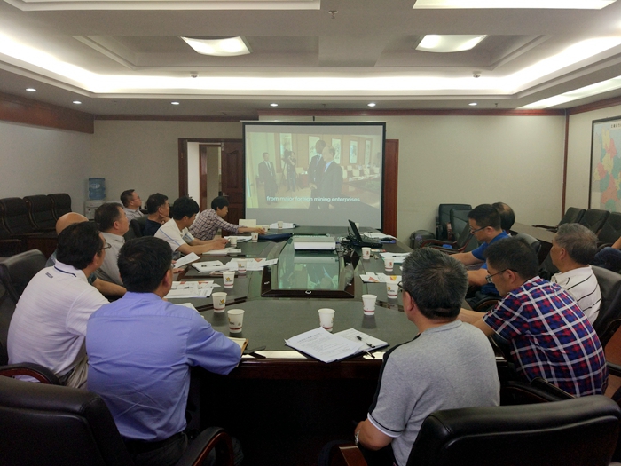 座谈会上双方共同观看了中国国矿业大会宣传片,王平副秘书长介绍2018中国国际矿业大会新的亮点及特色,就大会的重要活动、开幕式、论坛框架以及设立地勘项目融资洽谈交易展示专区作了详细阐述,通报了大会优惠政策及延伸附加服务(增加推介展示区安排发布推介,给展览企业10-15分钟项目推介展示等)。天津矿会中心副主任李俊就大会服务、保障、参会、参展、接待等相关事宜作了补充说明。与会的省国土资源厅相关部门负责同志,省矿业协会,相关矿山企业、地勘单位代表就大会的论坛设置、地勘项目融资、洽谈、交易等方向提出了意见和建议,并一致表示中国矿业大会是矿业人自己的大会,会后结合企业实际情况参加相关论坛和项目洽谈,并一如既往的支持配合中国矿业联合会办好2018中国国际矿业大会。
