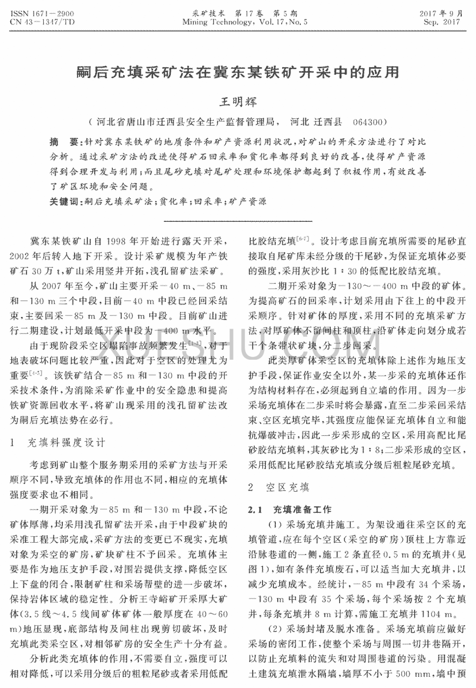 嗣后充填采矿法在冀东某铁矿开采中的应用