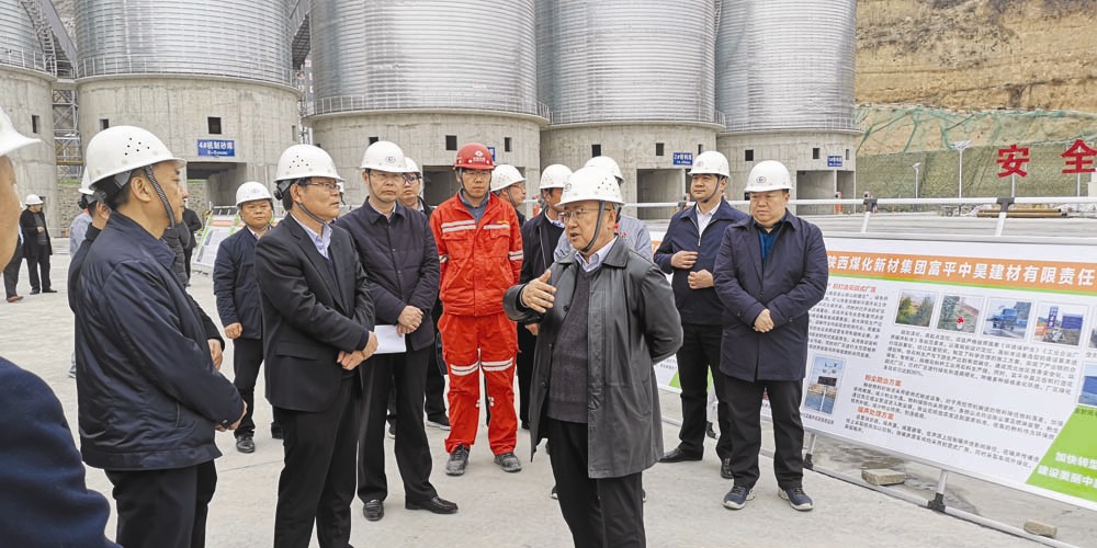 图为考察团在陕西富平县陕煤新材集团薛镇项目区进行现场考察学习。