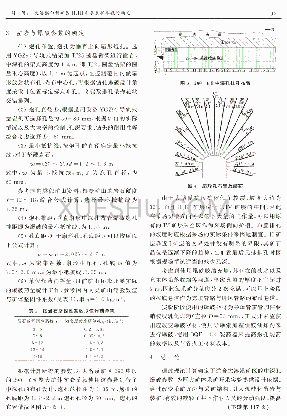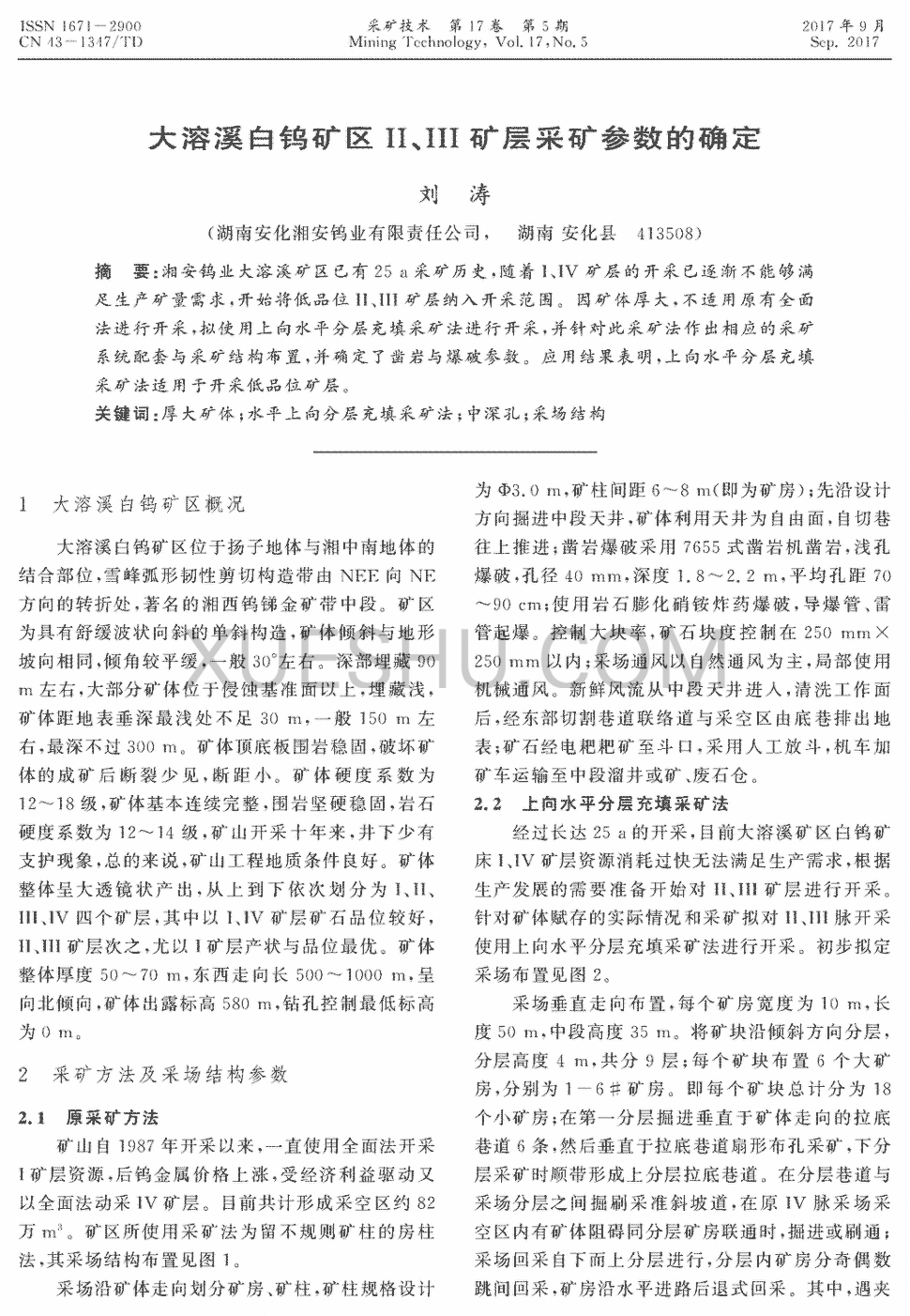 大溶溪白钨矿区Ⅱ、Ⅲ矿层采矿参数的确定