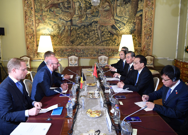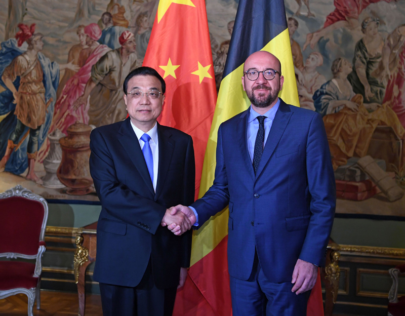 李克强指出,我此次来访将举行第二十一次中国-欧盟领导人会晤。中比关系是中国同欧盟关系重要组成部分。中方愿意看到一个团结、繁荣、一体化进程不断推进的欧洲,愿扩大同欧洲的双向开放,共同维护自由贸易。期待比方为促进中欧关系发展继续发挥积极作用。