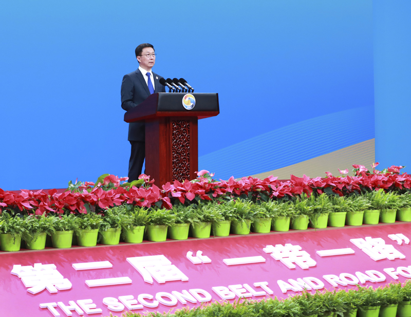 新华社北京4月26日电(记者安蓓、丁小溪)中共中央政治局常委、国务院副总理韩正26日在北京出席第二届“一带一路”国际合作高峰论坛高级别会议并致辞。