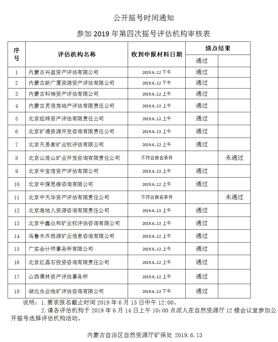 2019年第四次公开摇号时间通知