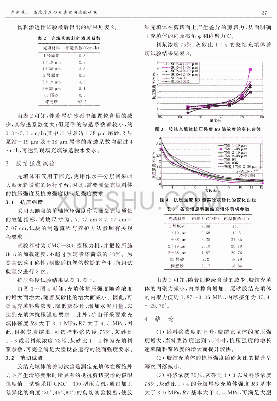 高浓度尾砂充填室内试验研究