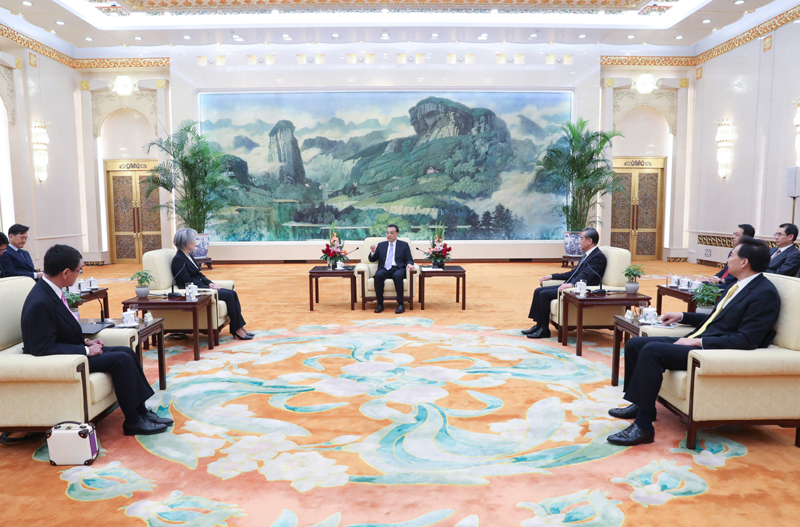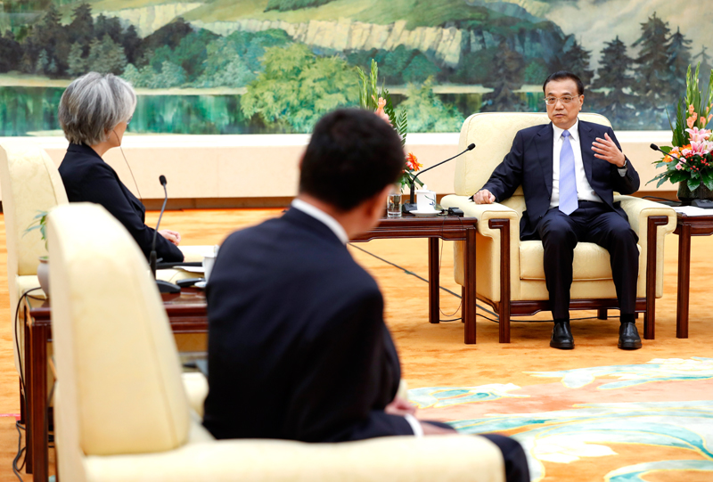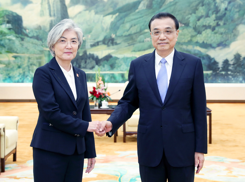时政要闻国务院总理李克强8月22日上午在人民大会堂会见来华出席中日韩外长会的韩国外长康京和、日本外相河野太郎。