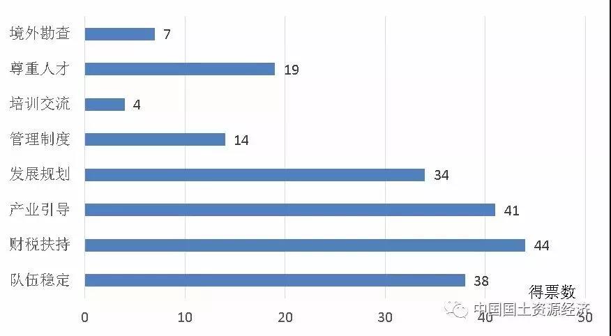 关于当前地勘行业服务与管理需要在哪些方面予以加强,调查显示:对加强财税扶持、产业引导最为关切,其次是保障队伍稳定、制定发展规划等。