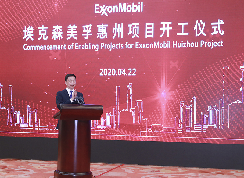 韩正出席埃克森美孚广东惠州乙烯项目"云开工"仪式