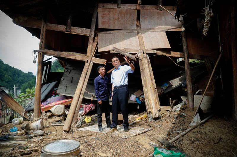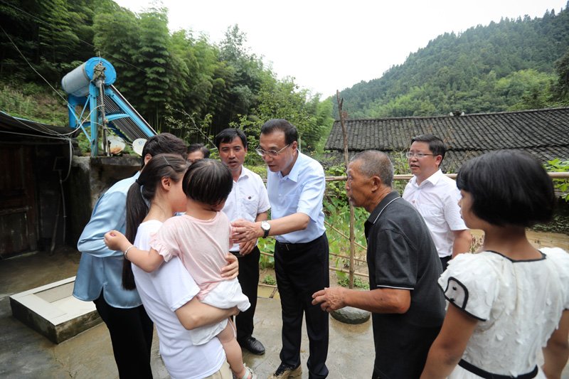 李克强7月6日下午驱车近一小时来到贵州铜仁江口县坝盘镇挂扣村,考察脱贫攻坚和防汛救灾安置等情况。总理说,近一段时期以来,我国南方多地发生洪涝灾害,习近平总书记作出重要指示。各地区各部门一定要贯彻落实好总书记重要指示精神,确保把人民生命安全放在第一位。挂扣村位于武陵山区大山深处。李克强一下车就走上一处陡坡,来到被洪水冲垮房屋的村民张良华家,关切地询问他家受灾安置情况,详细了解家庭主要收入来源等,要求当地政府一定做好受灾群众基本生活保障和就业帮扶工作。随后李克强来到受灾严重的李德海老人家中。他的曾孙女当时落入洪水,多亏村支书艾小祥从水中及时捞起并进行人工呼吸,这才得救。总理对村支书说,孩子救回来了,真不容易,谢谢你,救民于水。李克强沿途察看被泥石流冲蚀的挂坡地,听取相关负责人对贵州、铜仁等地的洪涝灾情汇报,要求有关部门加大对救灾重建工作的资金支持。总理最后来到村民李永进院中与当地村民进行座谈。李克强说,今年是脱贫攻坚决战决胜之年,全面脱贫是我们党对全国人民作出的庄严承诺。贵州脱贫任务很重,但取得的成效显著。当前既要不折不扣完成好脱贫任务,又要切实做好防汛救灾安置工作,防止因灾返贫。大家齐心协力,打赢脱贫攻坚战。