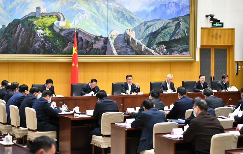 12月1日,中共中央政治局常委、国务院副总理、推动长江经济带发展领导小组组长韩正在北京主持召开推动长江经济带发展领导小组会议,深入学习领会习近平总书记在全面推动长江经济带发展座谈会上的重要讲话精神,贯彻落实党的十九届五中全会精神,审议有关文件,研究部署推动长江经济带高质量发展主要任务。新华社记者 谢环驰 摄