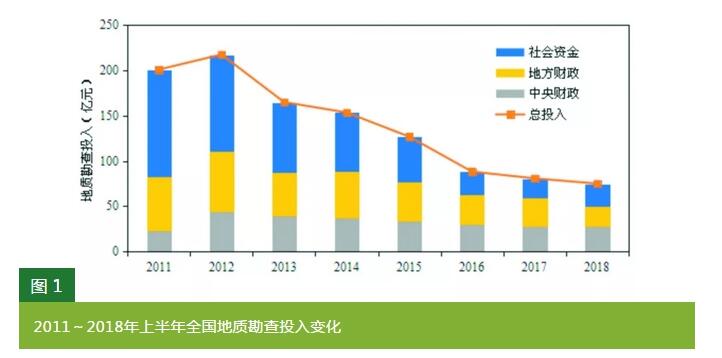自2013年开始,我国地质勘查行业进入了调整下行阶段,目前进入萎缩期的第6个年头。2018年上半年,地质勘查面临的政策环境、投资结构、专业结构等继续深度调整,地质勘查工作转型升级取得新进展。