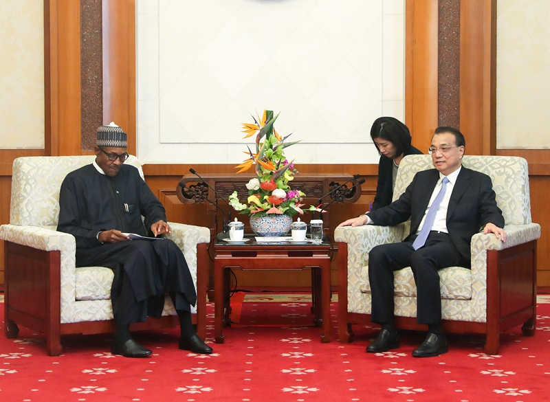 国务院总理李克强5日上午在钓鱼台国宾馆会见尼日利亚总统布哈里。