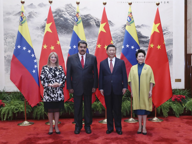 9月14日,国家主席习近平在北京人民大会堂同委内瑞拉总统马杜罗举行会谈。这是习近平和夫人彭丽媛同马杜罗夫妇合影。新华社记者 鞠鹏 摄